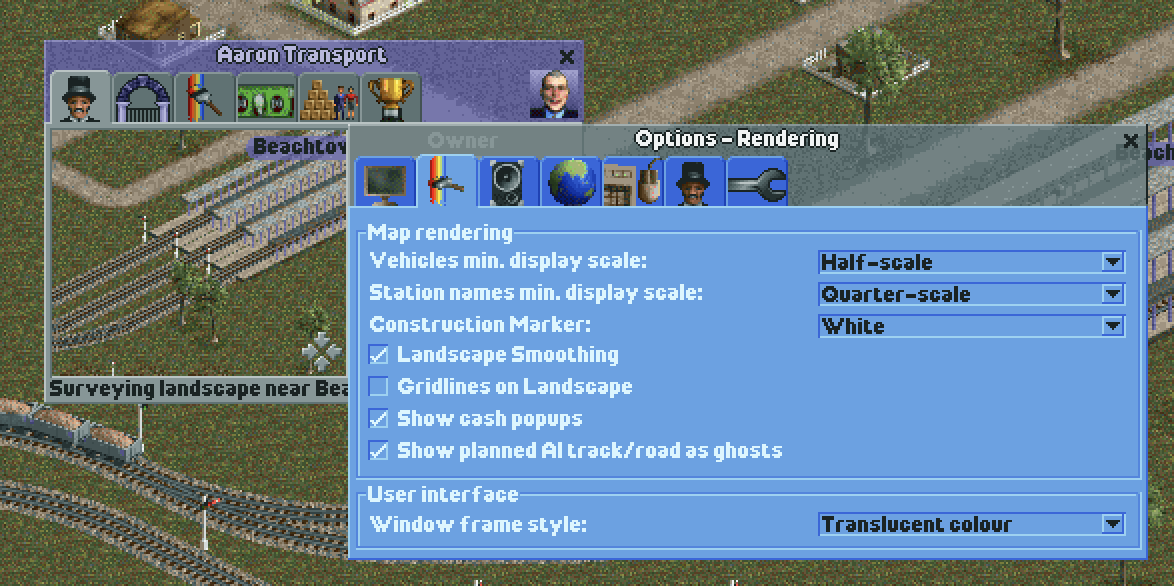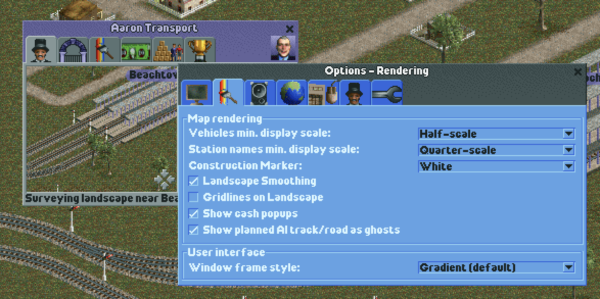 Compared to other Chris Sawyer games, Locomotion stands out due to its relatively sober window decorations. In fact, the ‘gradient’ look that characterises them is drawn using just one big sprite! For this reason, window sizes were limited to a width of 800 pixels — that’s all the sprite afforded!